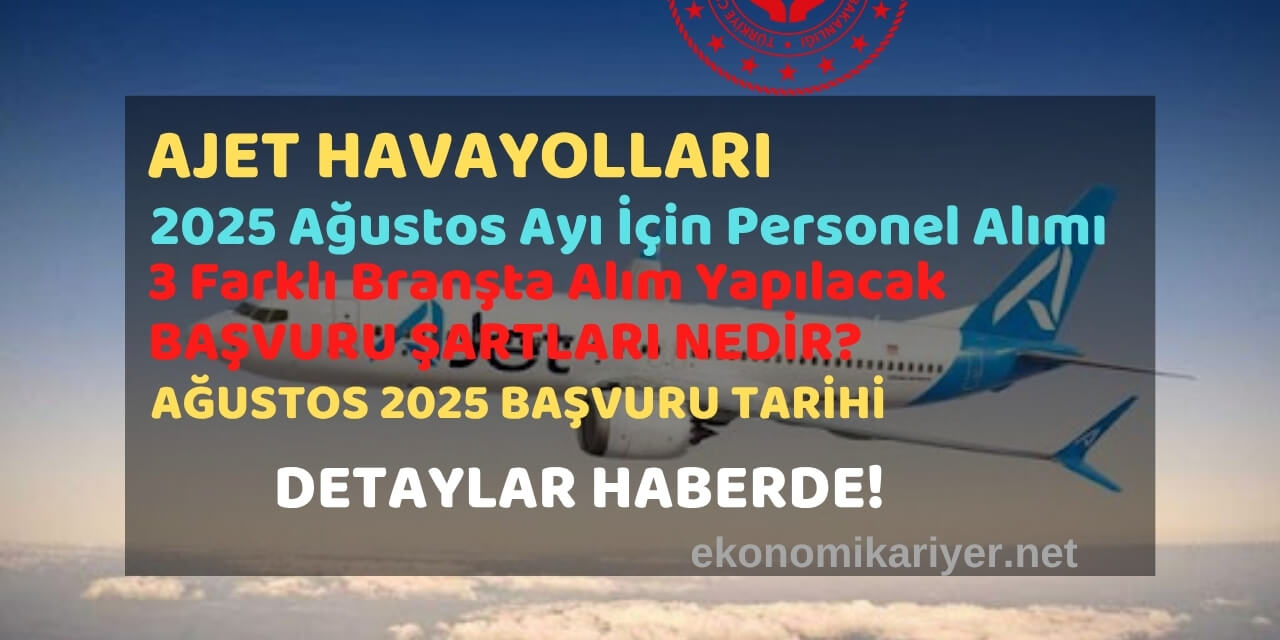 AJET Havayolları, Türk Hava Yolları (THY) iştiraki olarak 2025 yılı Ağustos ayı personel alımı kapsamında 3 farklı alanda yeni iş ilanlarını duyurdu. Başvuru süreci, aranan şartlar ve pozisyon detaylarıyla ilgili tüm bilgilere bu rehberimizde ulaşabilirsiniz.
