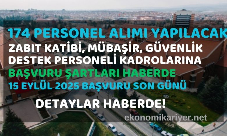 Toplam 174 personel alınacak. Kadro dağılımları yukarıda detaylı şekilde listelenmiştir.