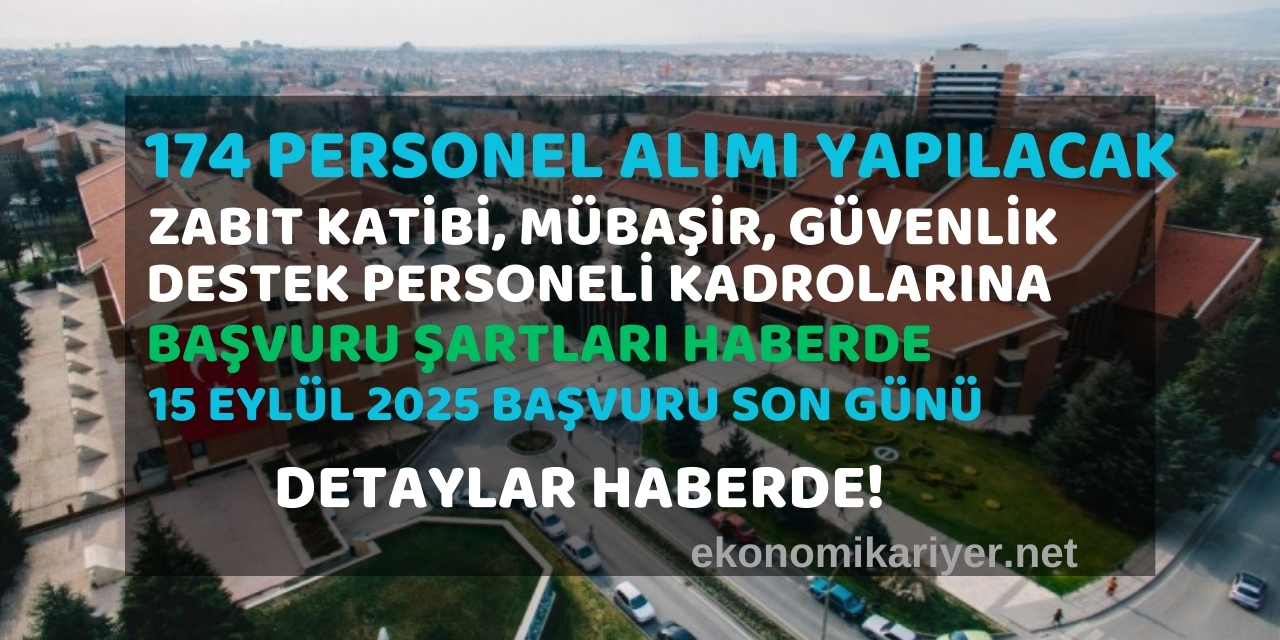 Toplam 174 personel alınacak. Kadro dağılımları yukarıda detaylı şekilde listelenmiştir.