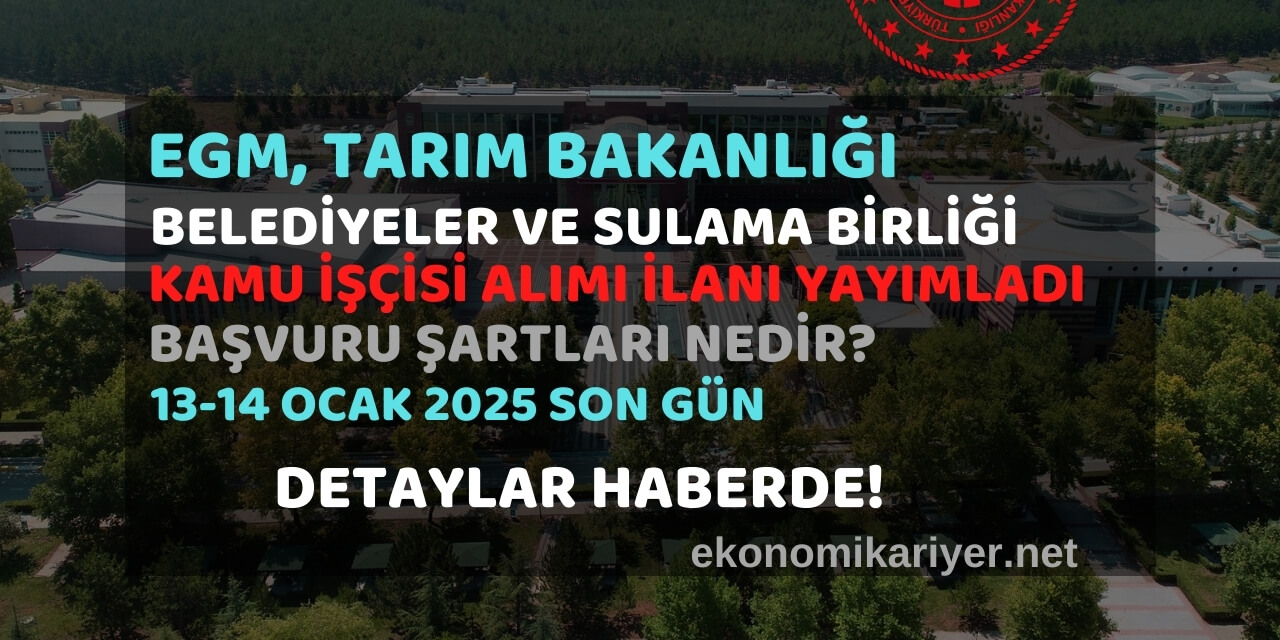 Emniyet Genel Müdürlüğü (EGM), Tarım ve Orman Bakanlığı, Belediyeler ve Sulama Birlikleri bünyesinde kamu işçisi alımı için başvuru tarihlerini duyurdu.