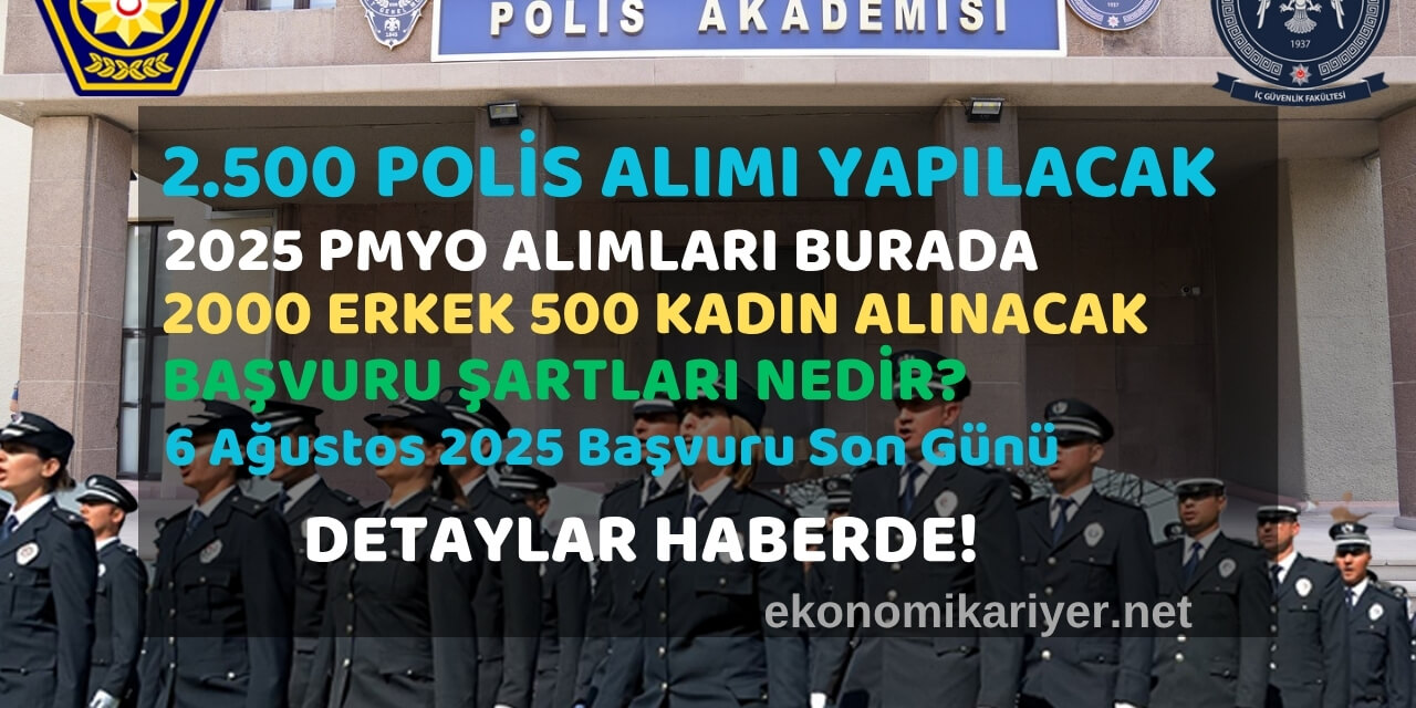 📢 Polis Akademisi Başkanlığı, 2025 – 2026 eğitim ve öğretim yılı için 2.500 yeni polis adayı alımı yapacağını resmen duyurdu. Polis Meslek Yüksekokulu (PMYO) kapsamında gerçekleştirilecek bu dev personel alımı için başvuru süreci 2 Ağustos 2025’te başlıyor. İşte başvuru şartları, kontenjan dağılımı ve sürece dair tüm merak edilen detaylar…