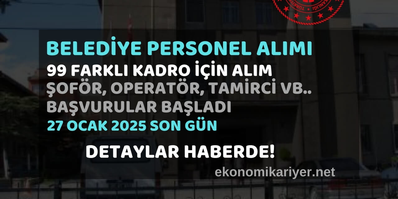 Belediye bünyesinde birçok farklı departman ve meslek kolunda istihdam sağlanacak.