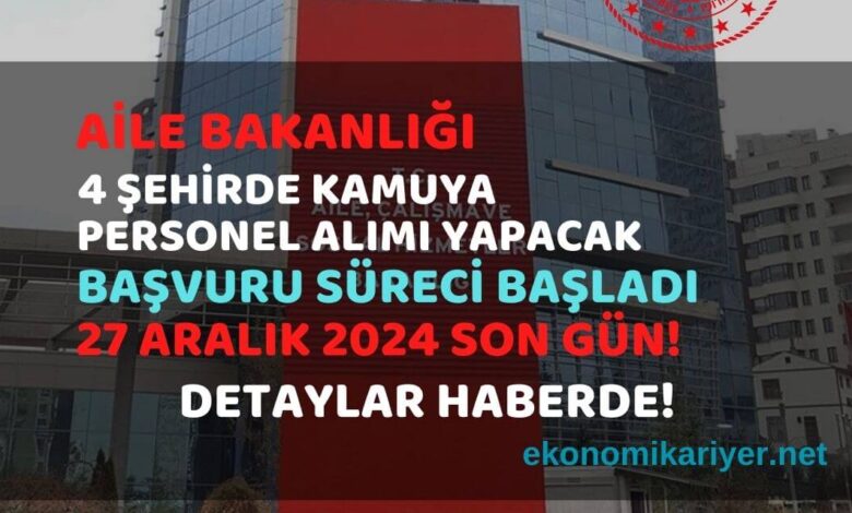 Aile Bakanlığı, 4 Şehirde Kamu Personeli Alım İlanlarını Duyurdu