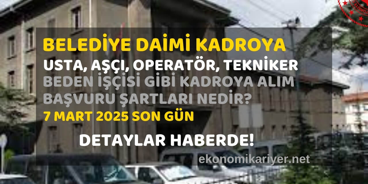 Belediye Daimi Kadro Personel Alımı: Usta, Aşçı, Operatör, Tekniker, Mimar ve Mühendis Pozisyonlarına Yeni Fırsatlar