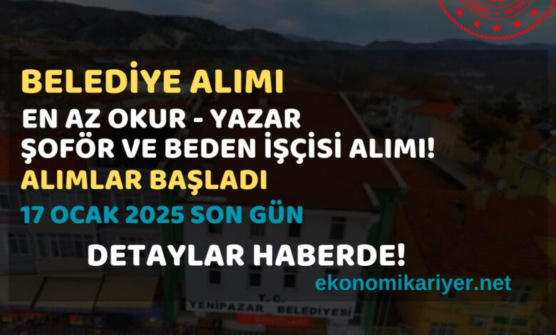 Belediye bünyesinde, en az okur yazar ve ilköğretim mezunu adayların başvurabileceği şoför ve beden işçisi pozisyonlarında toplamda 42 personel alımı yapılacağı açıklandı.