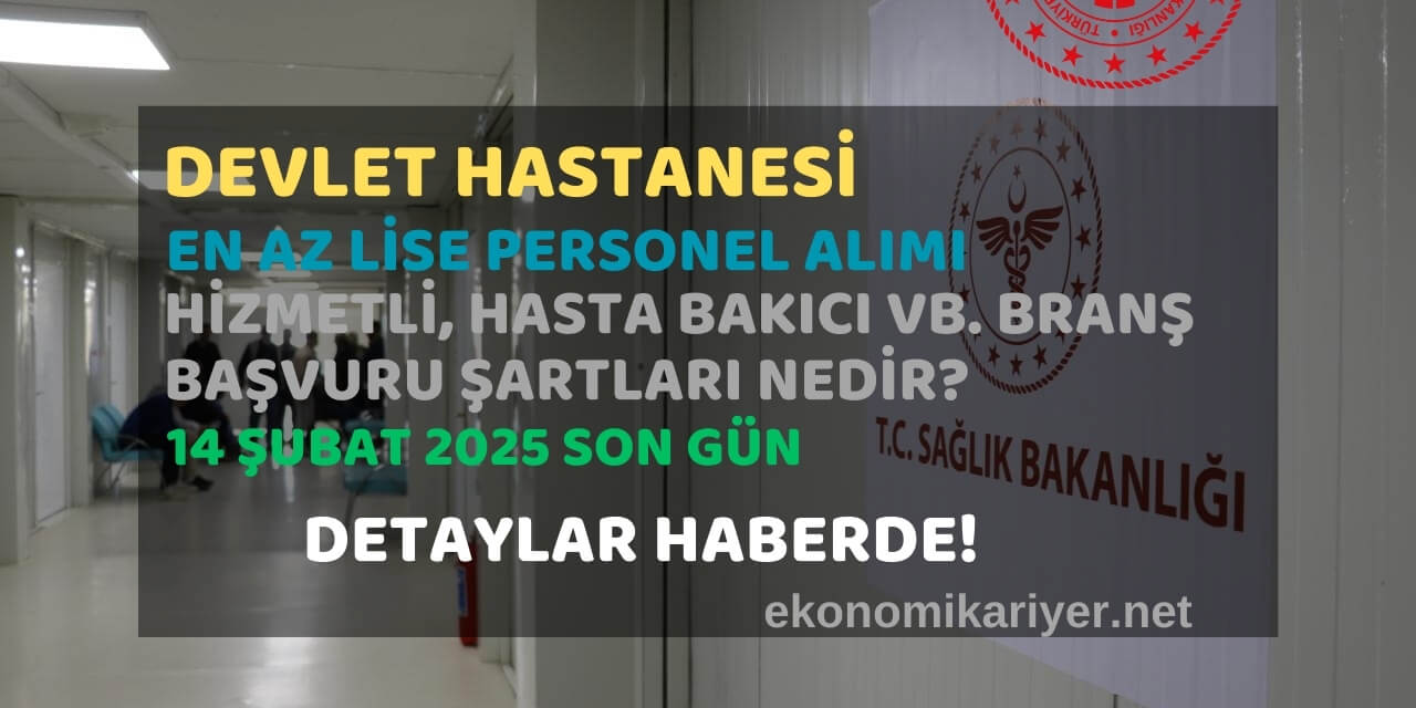 Devlet hastanesi memur alımına 31 Ocak 2025 – 14 Şubat 2025 tarihleri arasında e-Devlet üzerinden başvuru yapılacak.
