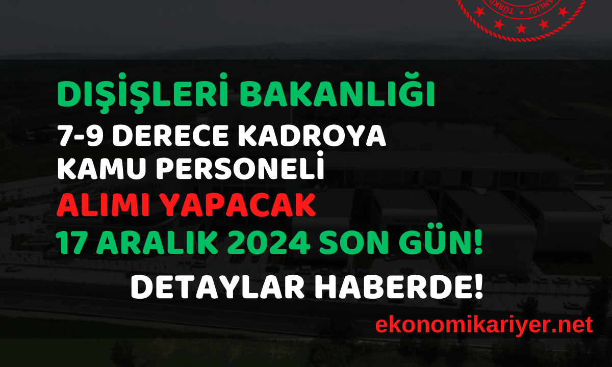 Dışişleri Bakanlığı, 2024 yılı için önemli bir kamu personeli alım ilanı yayımladı. Yedinci ve dokuzuncu derece kadrolarda istihdam edilmek üzere devlet memuru alımı yapılacağı duyuruldu. Bu alımlar, Dışişleri Bakanlığı’nın çeşitli birimlerinde görev alacak personel ihtiyacını karşılamak için düzenleniyor. Başvuru sürecinin nasıl işlediği, başvuru koşulları, aranan nitelikler ve diğer detaylarla ilgili bilmeniz gereken her şey bu yazımızda!
