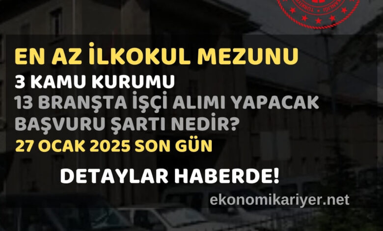 3 Kurumda 13 Branşta Daimi İşçi Alımı Başladı! İlköğretim, Lise, MYO ve Lisans Mezunlarına Fırsat