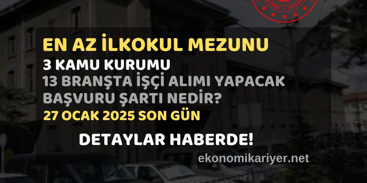 Türkiye genelinde üç farklı kurum, toplam 13 branşta personel alımı yapacağını duyurdu. İlköğretim, lise, meslek yüksekokulu (MYO) ve lisans mezunlarının başvurabileceği kadrolar için daimi işçi alımları başladı.