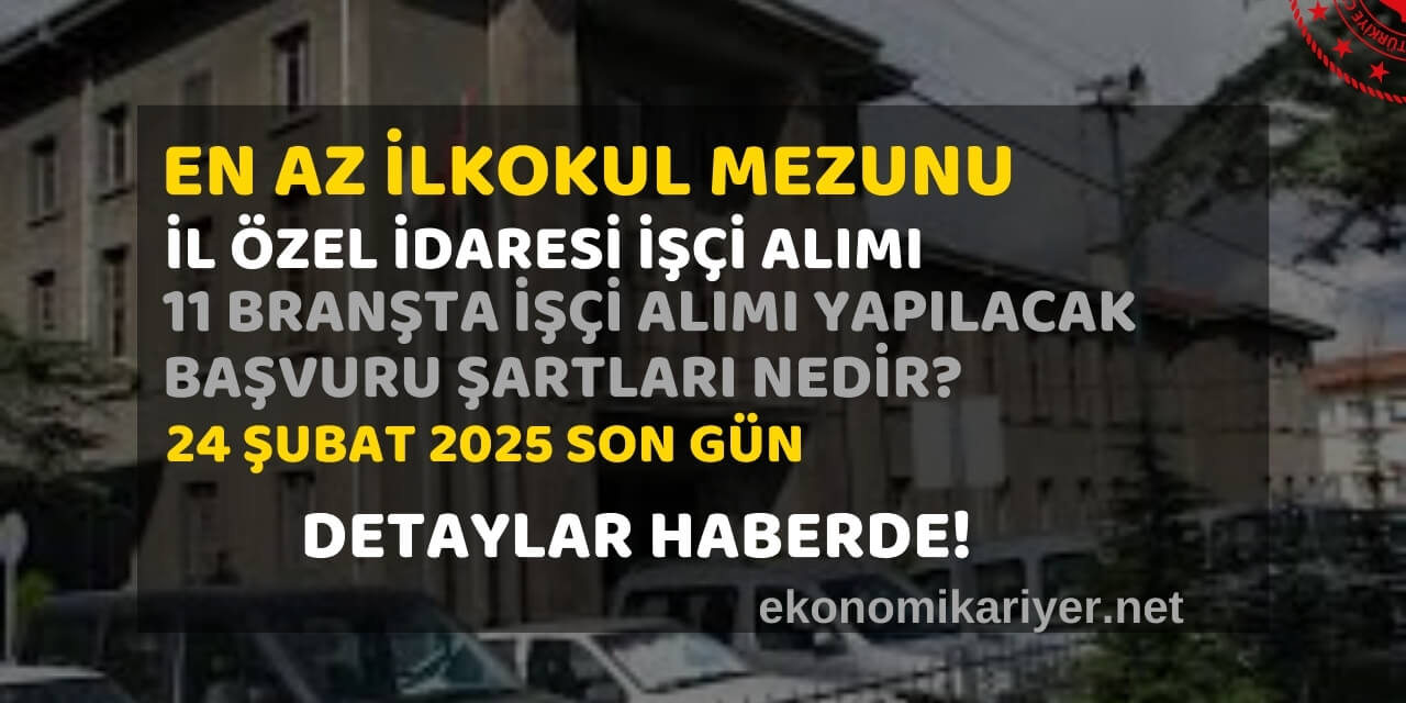 İl Özel İdaresi, bünyesinde görevlendirilmek üzere 11 farklı branşta işçi alımı gerçekleştireceğini duyurdu. İlkokul, ortaokul ve lise mezunu adayların başvurabileceği bu alım kapsamında, çeşitli pozisyonlarda istihdam sağlanacak. Başvurular ne zaman başlayacak, hangi şartlar aranıyor ve hangi pozisyonlar için alım yapılacak? İşte detaylar…