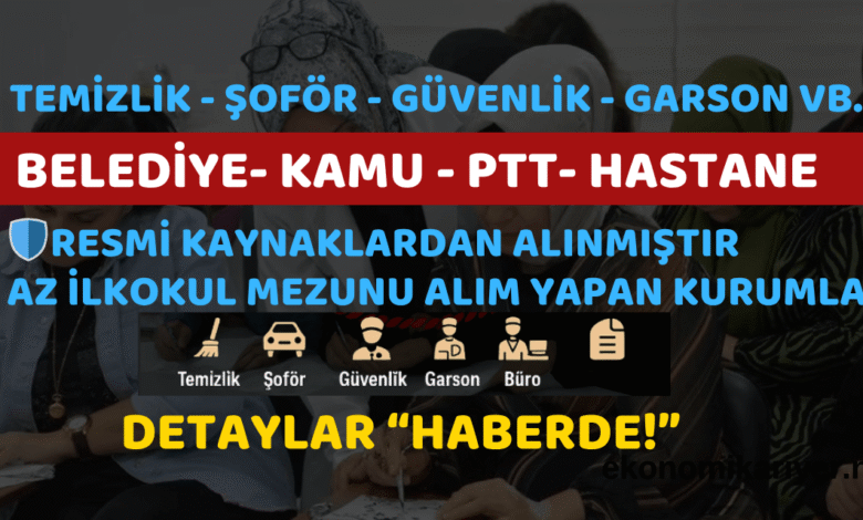 Belediye, Hastane, PTT, Güvenlik Görevlisi, Şoför, Temizlik Görevlisi ve Farklı Branşlarda Kamuda Alım Yapan Kurumlar