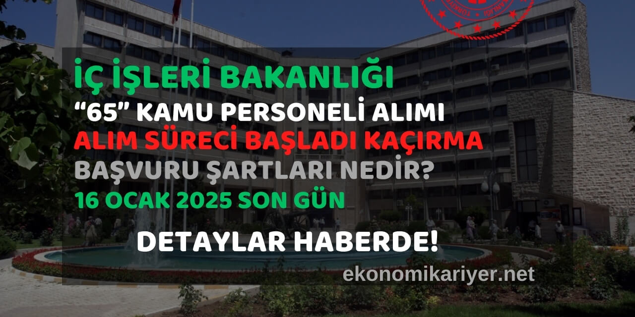 İçişleri Bakanlığı 65 kamu personeli alımı için başvuru süreci 10 Ocak 2025 tarihinde başlayacak.
