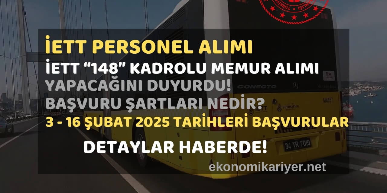 İstanbul Elektrik Tramvay ve Tünel İşletmeleri (İETT) Genel Müdürlüğü, bünyesinde çalıştırmak üzere toplamda 148 kadrolu memur alacağını duyurdu.