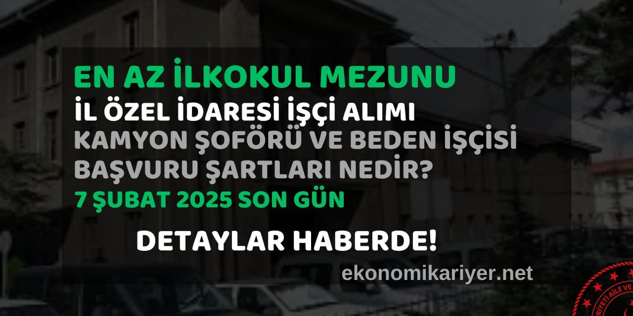 İl Özel İdaresi, farklı kadrolarda görevlendirilmek üzere en az ilköğretim mezunu işçi alımı yapacağını duyurdu. Toplamda 13 kişilik personel alımı yapılacak olup, başvurular için son tarih 7 Şubat 2025 olarak belirlendi.