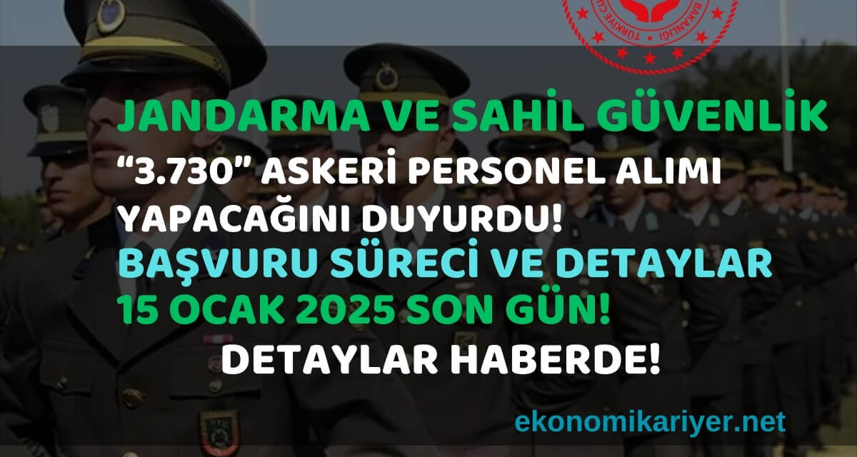 Jandarma Genel Komutanlığı ve Sahil Güvenlik Komutanlığı 2025 yılı için büyük bir askeri personel alımı gerçekleştirecek.