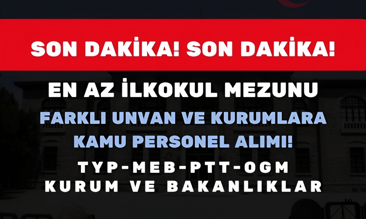 Türkiye genelinde birçok kamu kurumu, belediye, bakanlıklar, ilkokul, ortaokul, lise, ön lisans ve lisans mezunları için çeşitli kadrolarda yeni alım ilanı yayımladı