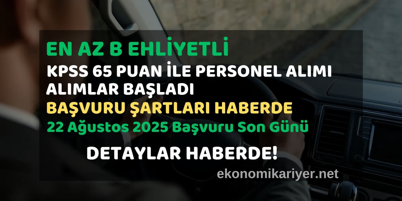 Kamu kurumlarında istihdam edilmek üzere KPSS’den en az 65 puan almış ve B sınıfı sürücü belgesine sahip adaylar için yeni personel alımı ilanı yayımlandı. 2025 yılı kapsamında yapılacak 4/B sözleşmeli memur alımı için başvuru süreci, şartlar ve kontenjan bilgileri belli oldu.