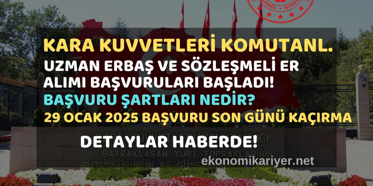 Milli Savunma Bakanlığı (MSB), 2025 yılı için Kara Kuvvetleri Komutanlığı bünyesinde uzman erbaş ve sözleşmeli er alımına ilişkin başvuruları almaya başladığını duyurdu.