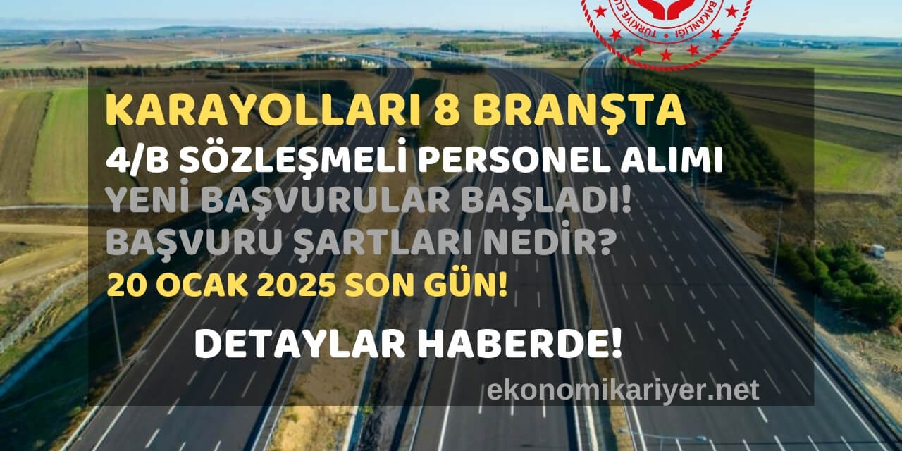 Karayolları 8 Branşta 4/B Sözleşmeli Personel Alımı Başladı! Yeni Kılavuz Yayımlandı