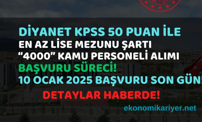 2025 yılı itibarıyla kamu sektörüne katılmak isteyenler için büyük bir fırsat kapıda! Diyanet İşleri Başkanlığı, en az 50 KPSS puanı şartıyla 4.000 sözleşmeli personel alımı gerçekleştiriyor.