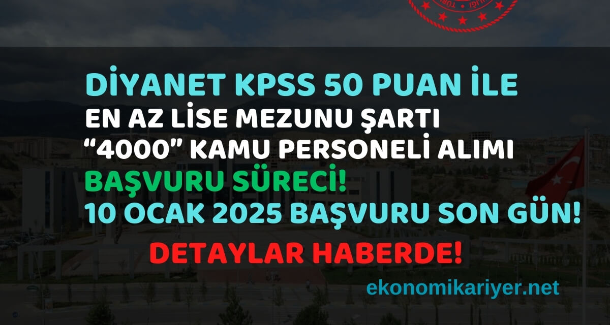 2025 yılı itibarıyla kamu sektörüne katılmak isteyenler için büyük bir fırsat kapıda! Diyanet İşleri Başkanlığı, en az 50 KPSS puanı şartıyla 4.000 sözleşmeli personel alımı gerçekleştiriyor.