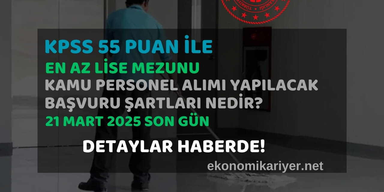 En az lise mezunu adayların başvurabileceği personel alımı için KPSS 55 puan şartı aranmaktadır.