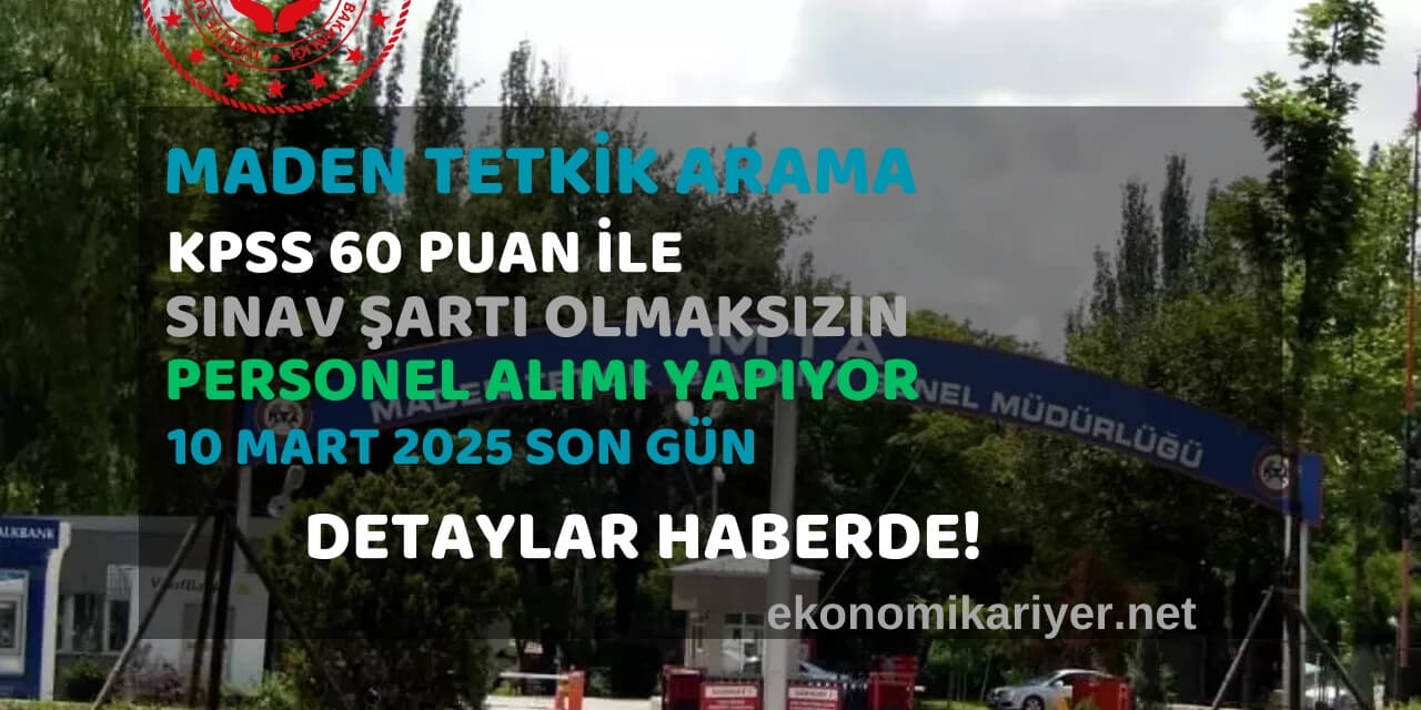 Maden Tetkik ve Arama Genel Müdürlüğü, kamu personel alım sürecinde mülakatsız olarak KPSS 60 puan eşikli sözleşmeli alım ilanını duyurdu. Bu alım, kurumun merkez teşkilatı birimlerinde görev yapacak nitelikli adayları hedefliyor ve 2024 yılı KPSS (B) grubu puan sıralaması esas alınarak gerçekleştirilecek.