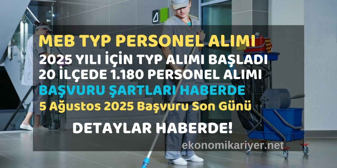 Milli Eğitim Bakanlığı (MEB), 2025 yılı kapsamında Toplum Yararına Programlar (TYP) aracılığıyla 20 ilçede toplam 1.180 geçici personel alımı yapacağını duyurdu. Başvurular İŞKUR üzerinden başladı ve son başvuru tarihi 5 Ağustos 2025 olarak belirlendi. Peki, başvuru şartları neler? Hangi ilçelerde alım yapılacak? Detaylar haberimizde…
