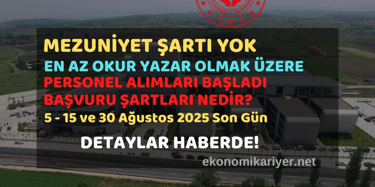 Kamuya yeni personel alımları başladı! Mezuniyet şartı aranmadan; okur-yazar, ilkokul, ortaokul, lise ve önlisans (MYO) mezunu adaylar için farklı kadrolarda güncel iş ilanları yayımlandı. Beden işçisinden garsona, bulaşıkçıdan fast food hazırlayıcısına kadar birçok branşta kamu personeli ve işçi alımı yapılacak. İşte il il alım detayları, başvuru şartları ve son tarihler…