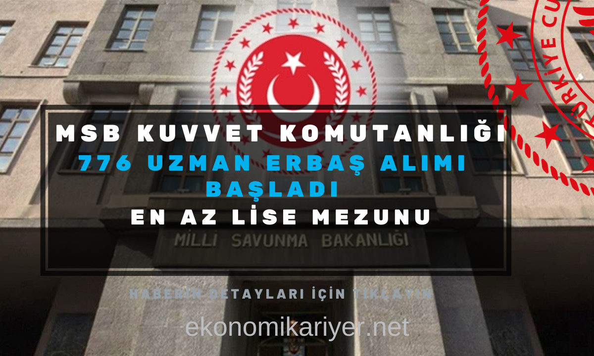 Milli Savunma Bakanlığın bünyesinde MSB ile Kuvvet Komutanlıkları için 776 uzman erbaş alımında başvuru süreci başlamış durumda.