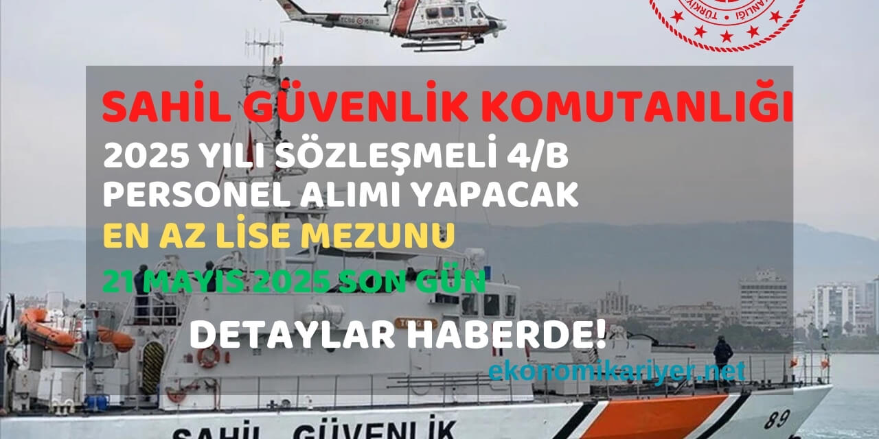T.C. İçişleri Bakanlığı Sahil Güvenlik Komutanlığı, 2025 yılı kapsamında sözleşmeli 4/B statüsünde çok sayıda personel alımı yapacağını duyurdu.