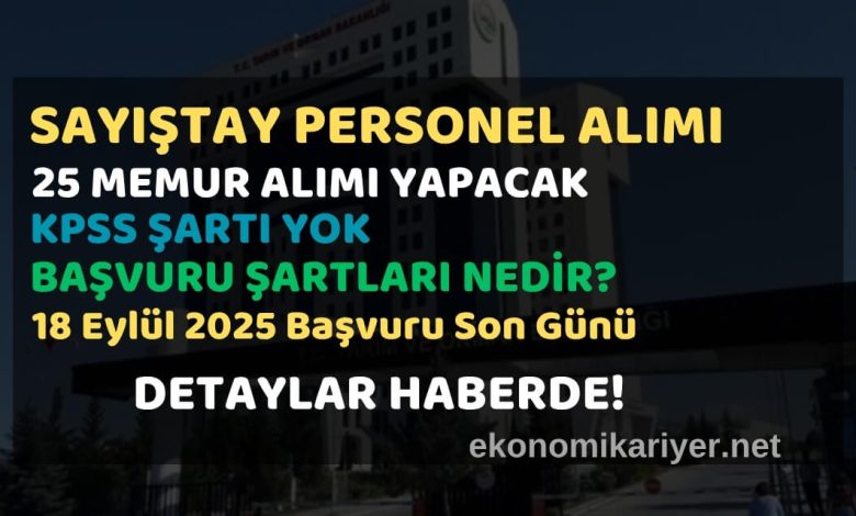Resmi olarak yayımlanan ilana göre Kamu Personel Seçme Sınavı (KPSS) şartı aranmadan, uygun niteliklere sahip adaylar arasından 25 kişilik memur alımı yapılacak. Alımlar, Sayıştay Başkanlığı bünyesinde Denetçi Yardımcısı pozisyonu için gerçekleştirilecek.