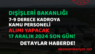 Dışişleri Bakanlığı 7-9. Derece Kadrolu Kamu Personeli Alımı